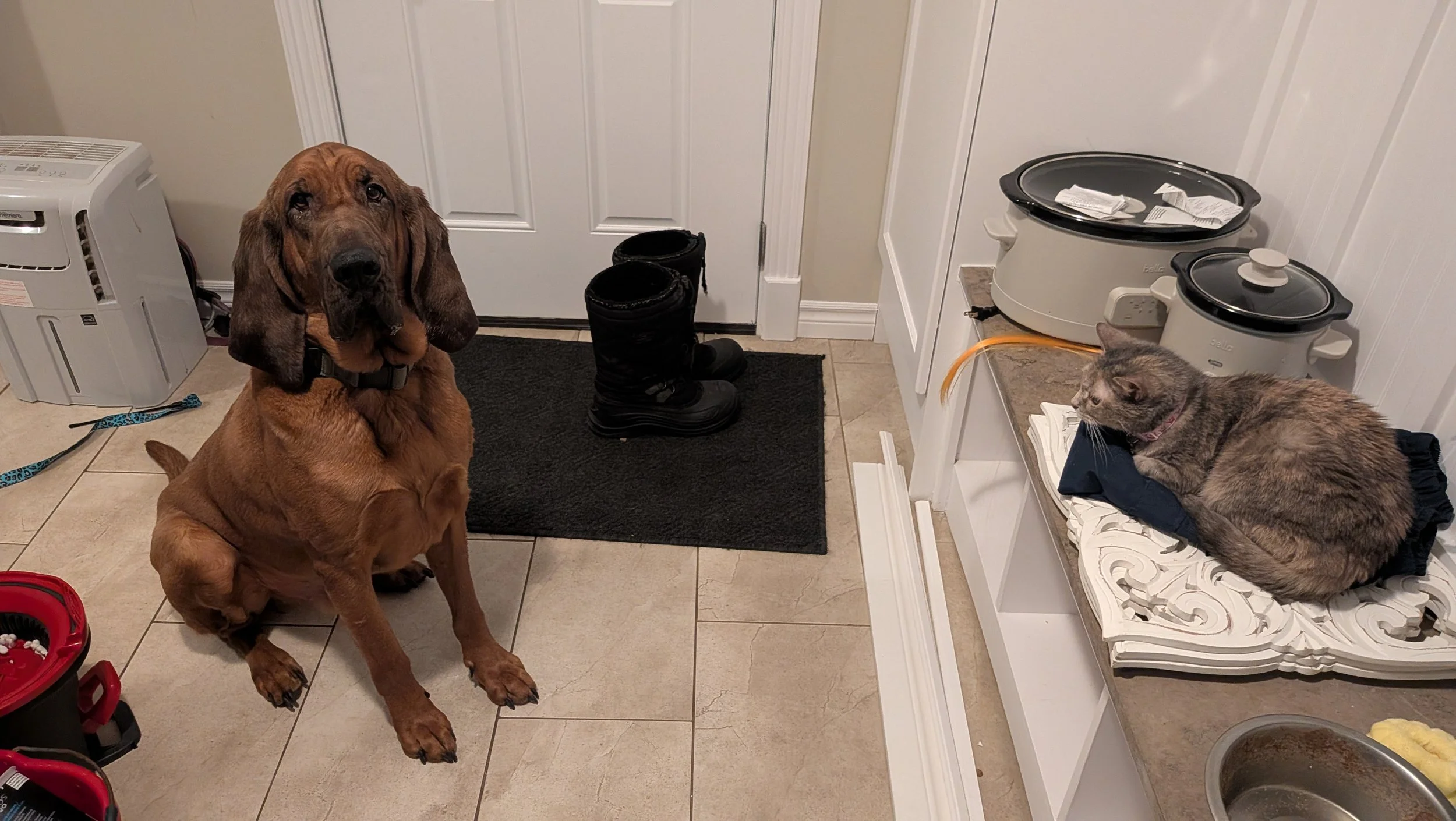 Today, Kitty Kardashian is called “Mae” and is settling beautifully into her forever home. She even has a Bloodhound brother named Charlie (who is scared of her, for the record). Mae has opened up considerably since moving in, loves to snuggle, and is clearly cherished by every member of her family.